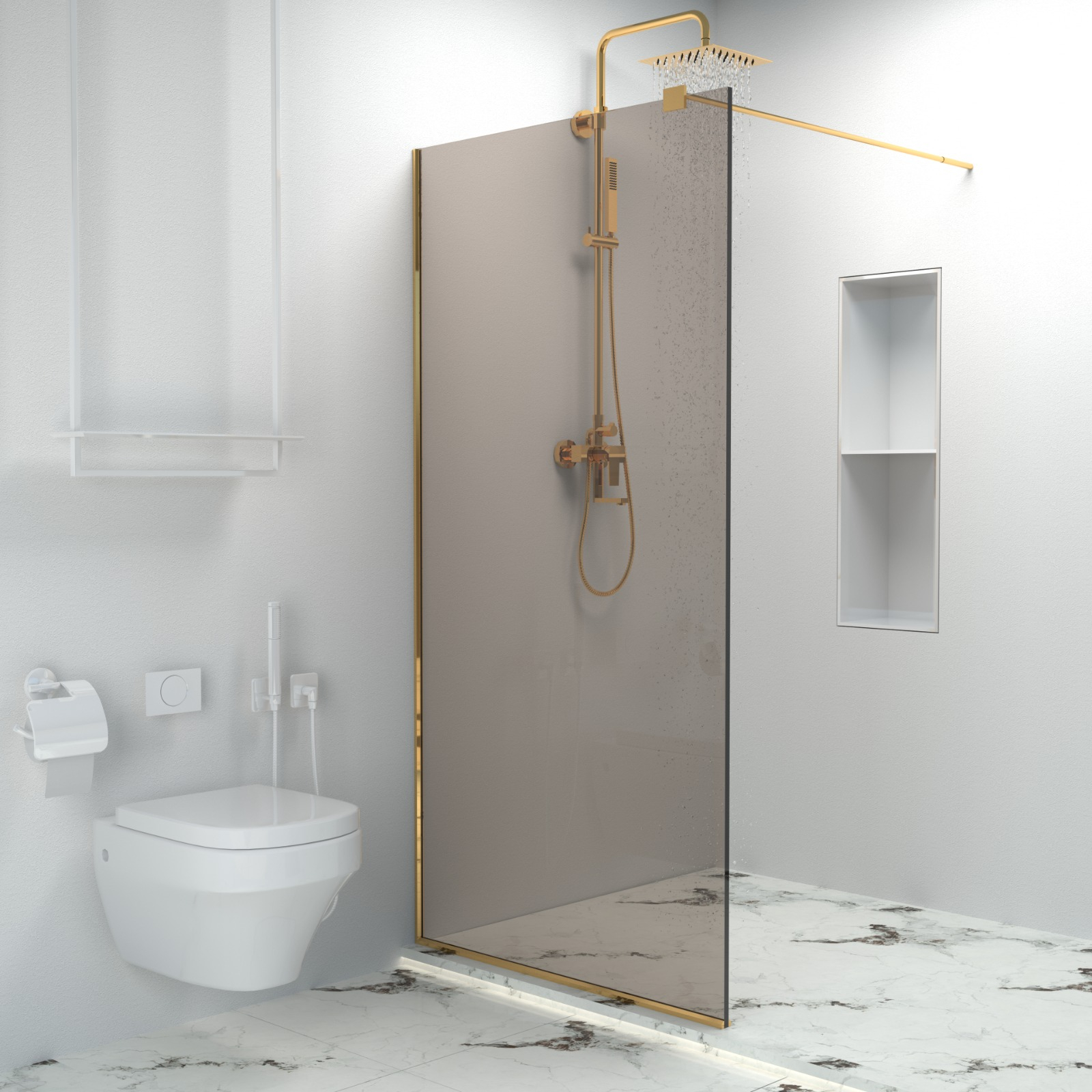 Paravan dus tip walk-in, Sticla Securizata Bronze de 8mm, Accesorii Feronerie Gold, Tratament anti-calcar, 80 x 195 cm