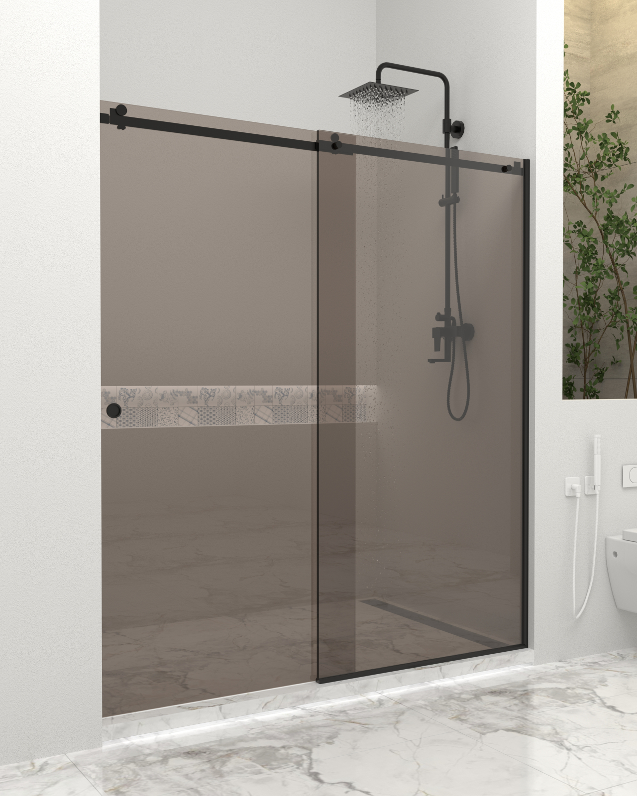 Paravan dus cu usa culisanta, Sticla bronze de 6 mm, Accesorii Feronerie Negru Mat, 170 - 180 x 200 cm